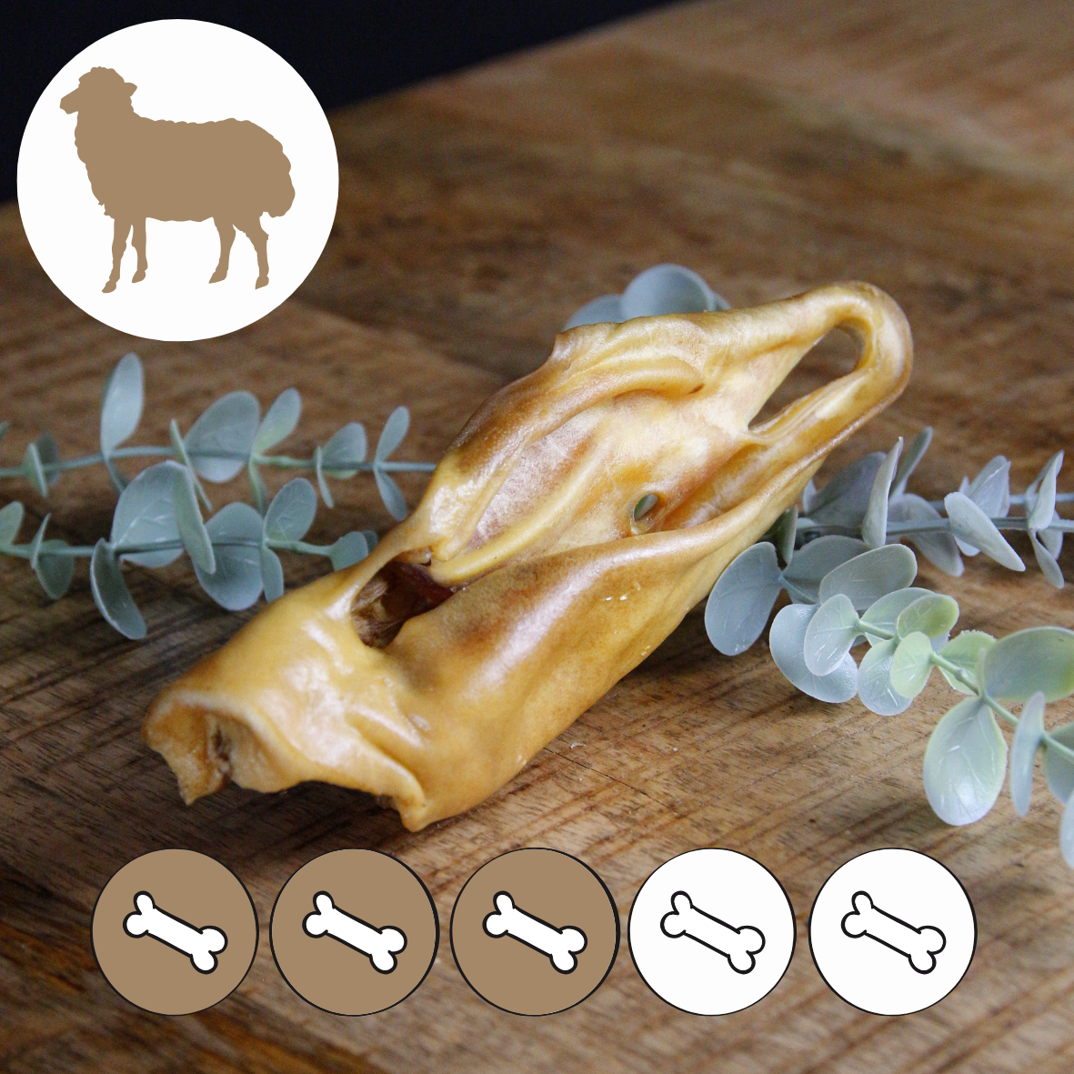 Geschikt voor: Hypoallergeen, is wat dunner dan runderkophuid vanaf kleine stevige kauwers.
